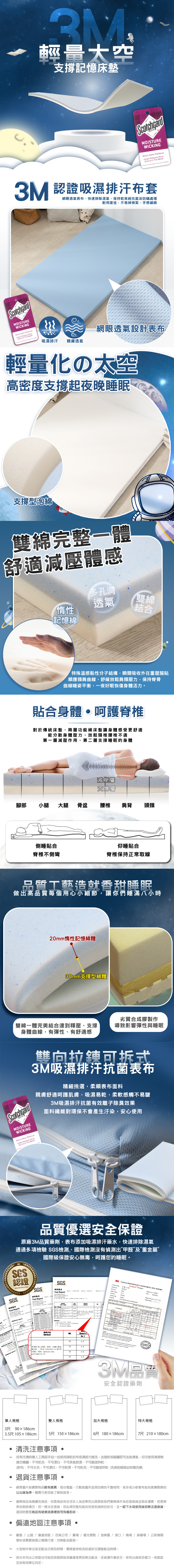 表布:Polyester(經3M專利吸濕排汗處理)