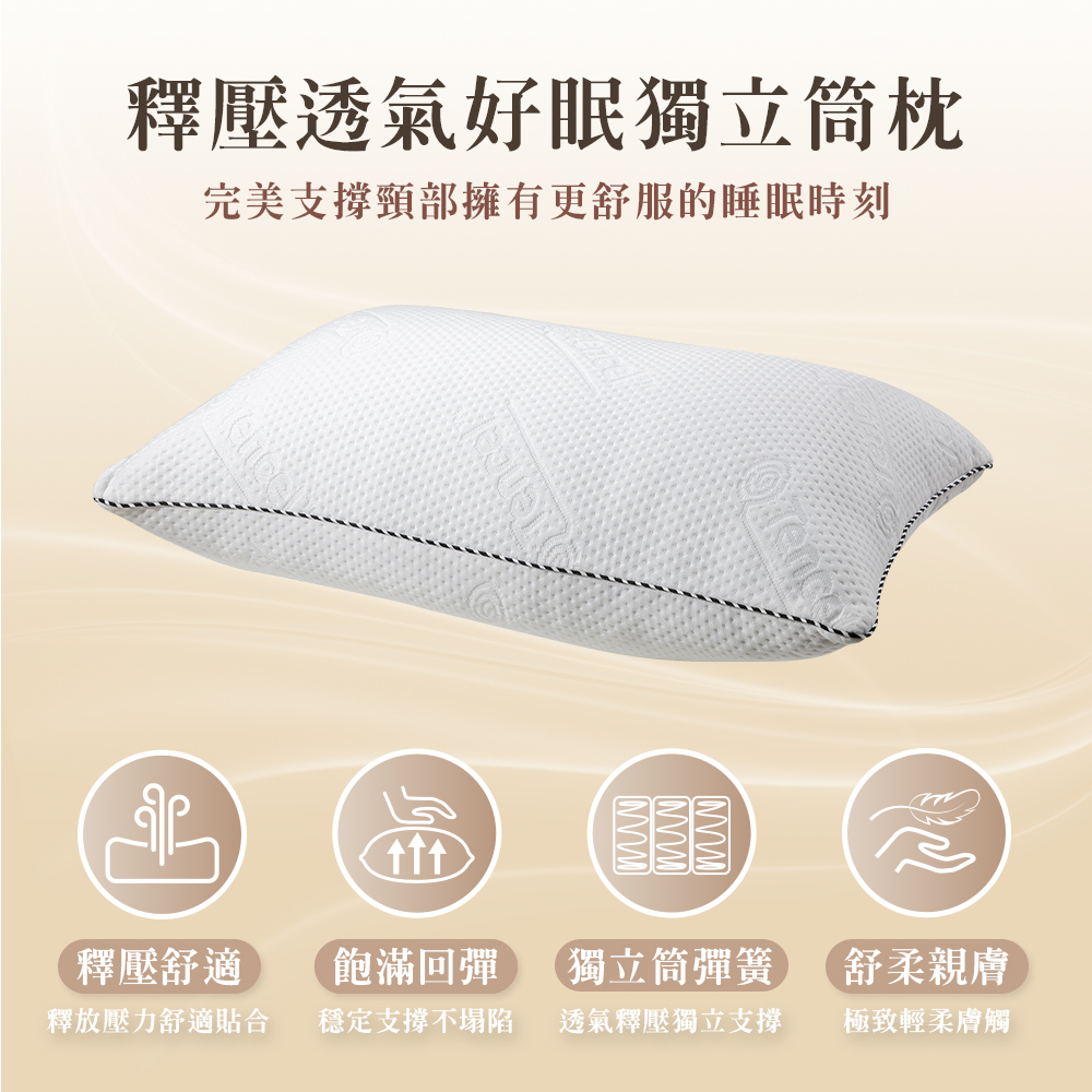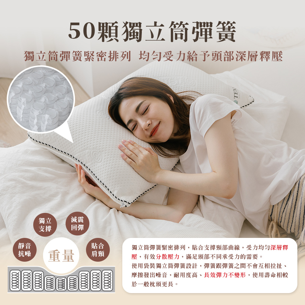 -50個高回彈獨立筒彈簧,適中的軟硬度,支撐性加強,不易扁塌。