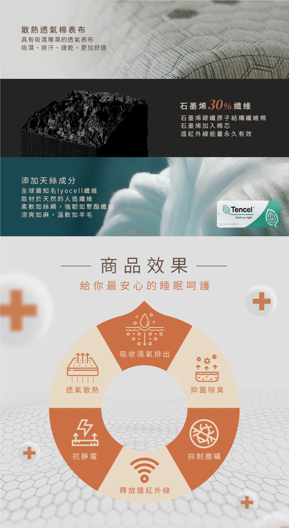 表布:60%Lyocell+40%Polyester(30%石墨烯纖維)
