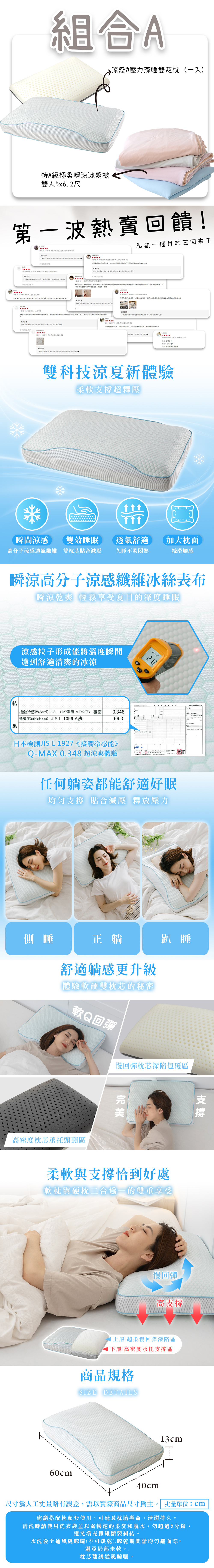 商品:涼感0壓力深睡雙芯枕 (一入)