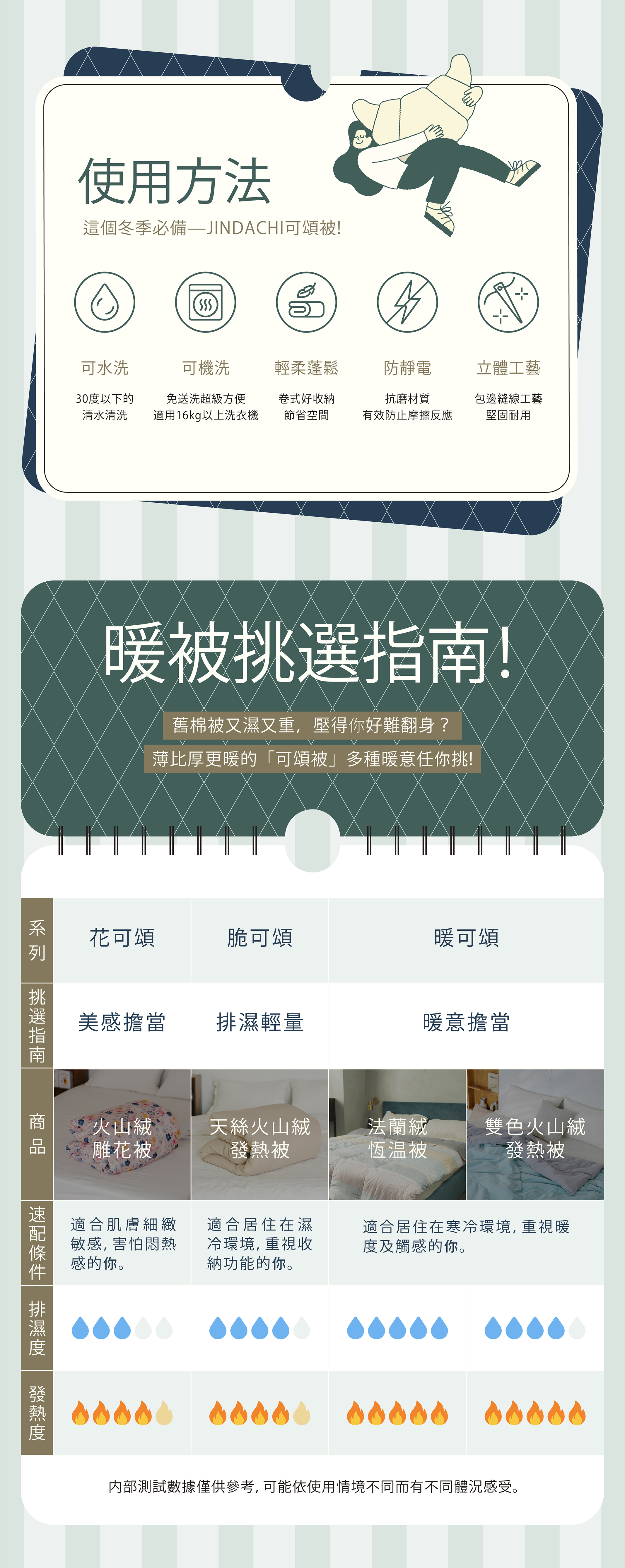 A:建議使用16kg以上洗衣機清洗,請單獨清洗不要與其他衣物或棉被一起清洗,清洗時可用棉被專用的洗衣袋及柔洗模式。