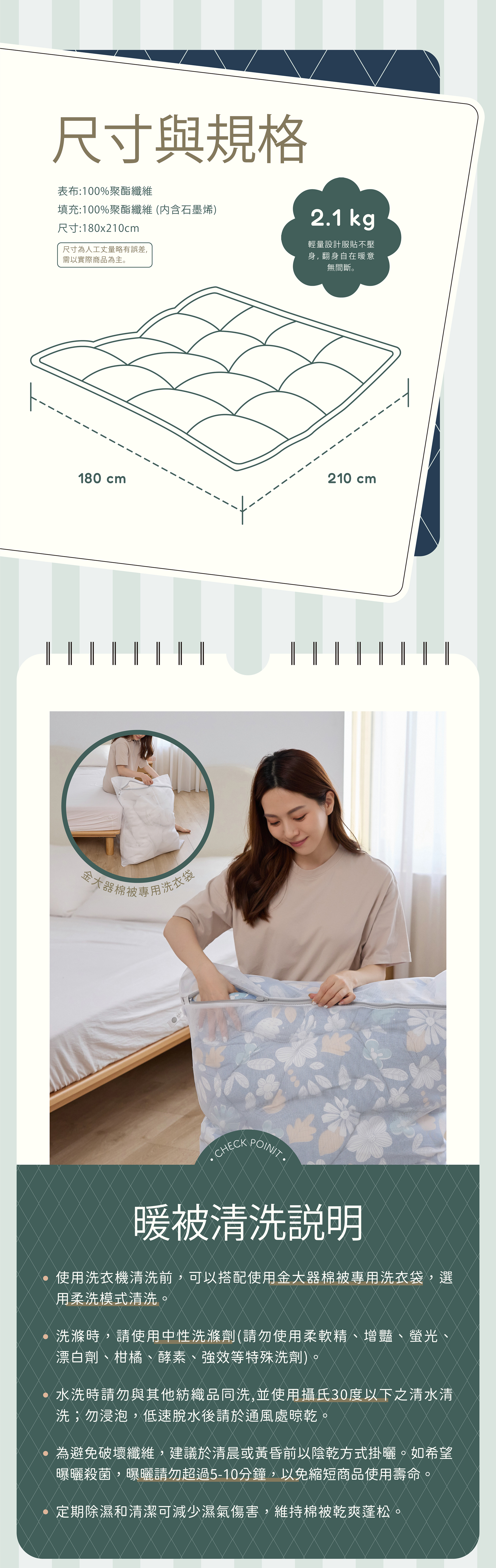 尺寸:180x210 cm(正負5%為許可誤差值,皆屬正常)